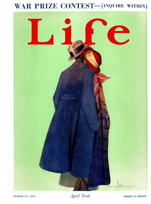 Grenard poster of hats a coats, hanging as if they were a couple. Life Magazine cover March 27, 1924.
