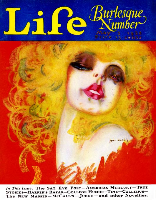 John Held Jr. poster of a dazzling girl with strawberry blond hair flowing all around. Life Magazine cover May 3, 1928.