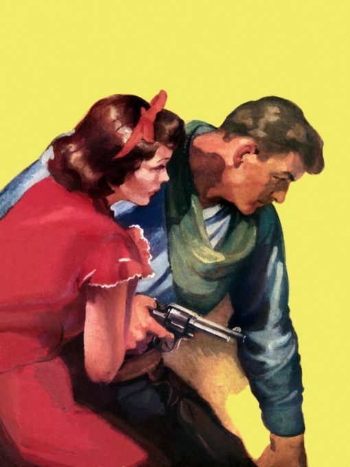 Cowboy and woman in red drees preparing for attack