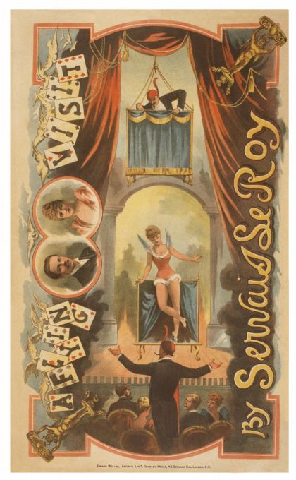 Magician Servais Le Roy conducts a show for and audience while his wife assists.