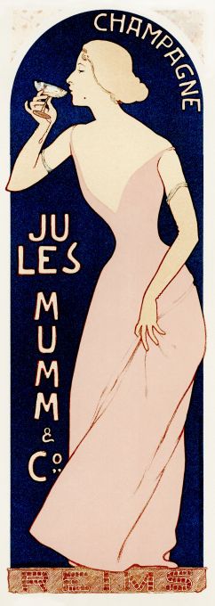 Realier-Dumas poster reading Jules Mumm & Co. champagne, Reims. 1895. - Maurice Realier-Dumas (French; 1860-1928): Genre painter and draftsman; studied with Gerome; frequent exhibitions and awards.