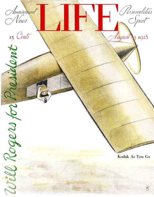 FGC poster of a person leaning out of a plan holding a camera and taking pictures. Life Magazine cover August 9, 1928.