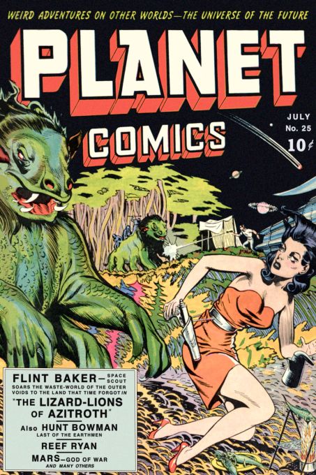 Planet Comics no. 25 July. Flint Baker space scout, soars the waste world of the outer voids to the land that time forgot in Lizard Lions of Azitroth.