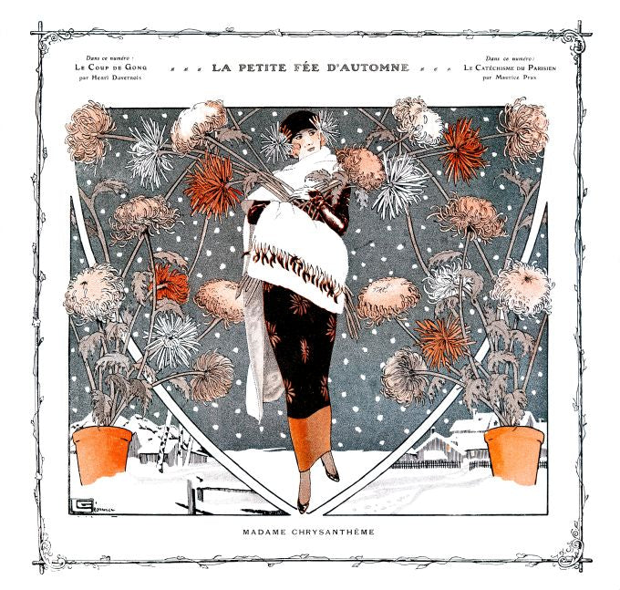 Pin Up - Chrysanthemum Girl Walks in Snow - Leonnec - 1912