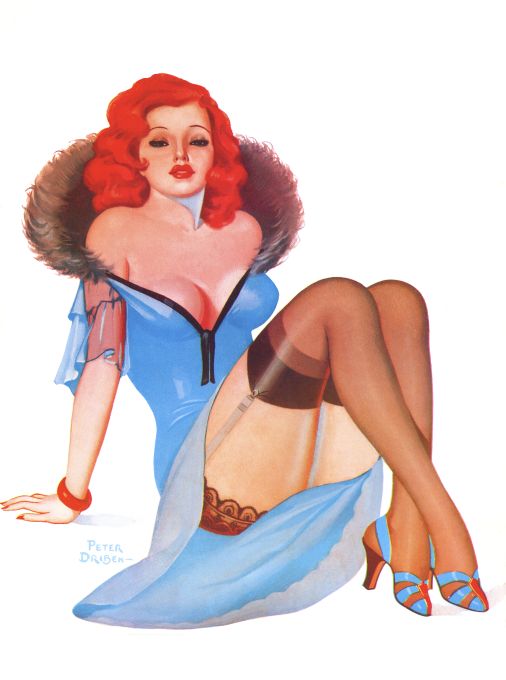 Pin Up - Sophisticated Redhead Girl in Blue - Driben - 1938