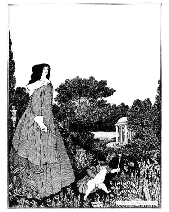 Beardsley illustration for the cover of 'The Savoy,' No. 1, published by Leonard Smithers, 1896. (The volume representing 'The Yellow Book' below the male figure was deleted before the first number of 'The Savoy was published.)